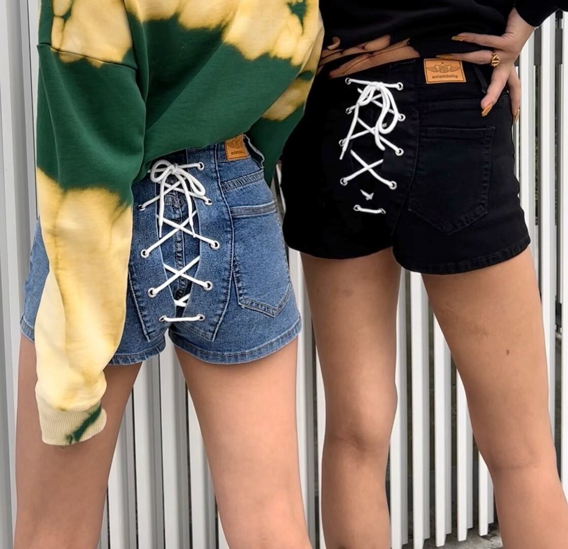 編み上げデニムショートパンツ