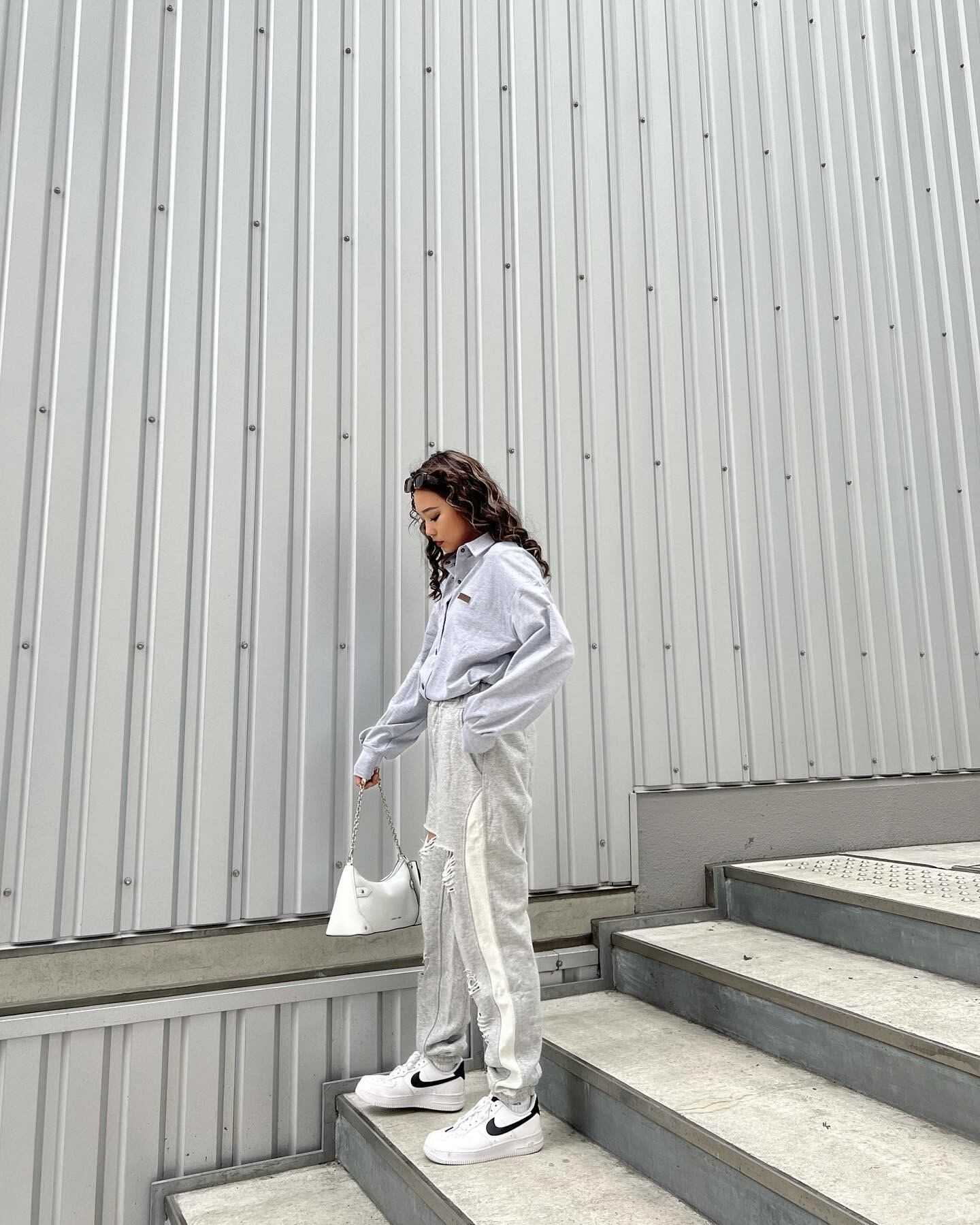 ・ダメージ加工を入れたことでスウェットでもパジャマ感なくおしゃれに着こなせます(^^)