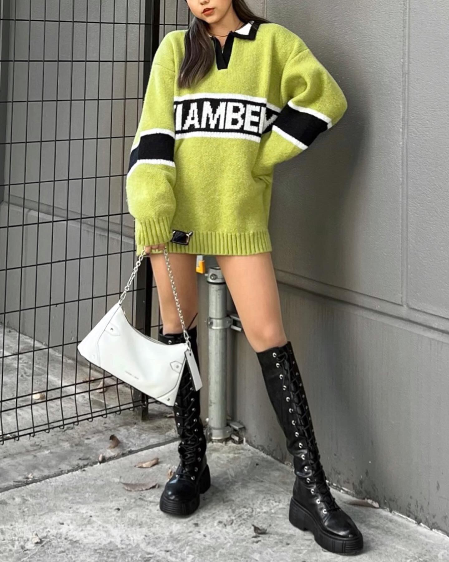 ・ブランドロゴが入ったビッグシルエットのスキッパーニット。生地感がしっかりしてるので、着用した時のボタっと感が可愛いです❤︎